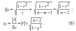 Для чистого коэффициента корреляции Если tr > tтабл., то коэффициент парной корреляции — общий или чистый является статистически значимым, а при tr ≤ tтабл. — незначимым. Значимость коэффициента множественной корреляции R проверяется по F — критерию Фишера путем расчета его фактического значения
