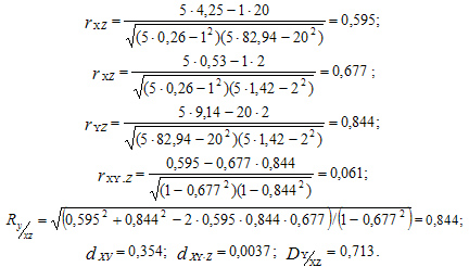 Этот коэффициент изменяется от -1 до +1. Квадраты коэффициентов корреляции (2)-(4) называются коэффициентами (индексами) детерминации — соответственно парной, чистой (частной), множественной (совокупной):