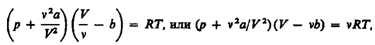 Для произвольного количества вещества v газа (v=m/M) с учетом того, что V=vVm, уравнение Ван-дер-Ваальса примет вид