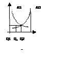 Макроэкономическое равновесие. Пересечение кривы совокупного спроса и совокупного предложения определяет равновесный уровень цен и равновесный реальный объем нац производстваПересечение кривы совокупного спроса и совокупного предложения определяет равновесный уровень цен и равновесный реальный объем нац производства. Равновесие на промежуточном отрезке кривой совокупного предложения.
