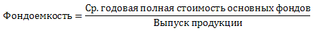 Фондоемкость является обратной величиной от фондоотдачи. Она характеризует сколько основных производственных фондов приходится на 1 рубль произведенной продукции. Фондоемкость это средняя сумма промышленно производственных основных фондов по первоначальной стоимости деленная на объем выпущенной продукции.