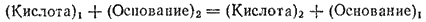 Связанные этим соотношением основание и кислота называются сопряженными. Например, Реакцию между кислотой и основанием протонная теория представляет схемой: