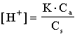 Увеличение [H+] вызывает уменьшение [OH-] и наоборот. При этом никогда ни та ни другая концентрация не будет равна нулю. Для реакции H+aq+ OH-aq = H2Oж DH = -56 кДж/моль, диссоциация воды процесс эндотермический, поэтому с увеличением температуры KW будет возрастать. Для характеристики кислотности или щелочности среды можно воспользоваться [H+] или концентрацией [OH-]. В нейтральной среде [H+]=[OH-]= 10-7. В кислой среде [H+]>[OH-] или > 10-7. В щелочной наоборот. Для упрощения расчетов лучше пользоваться т.н. водороднымпоказателем рН = - lg[H+] или pOH = - lg[OH-]. Очевидно, что рН + pOH = 14 Как изменяется рН? В кислой среде рН<7. В щелочной больше 7. рН 1н соляной кислоты должен быть равен 0. РН 1н щелочи - 14. Может ли он быть меньше 0 или больше 14? Казалось бы рН 10н кислоты будет -1. На самом деле нет, поскольку это уже очень концентрированный раствор и кислота в нем далеко не полностью диссоциирована. Определение рН растворов. а) С помощью индикаторов. Индикатор - слабая кислота или слабое основание, у которого недиссоциированная и диссоциированная формы имеют разную окраску. Добавление к раствору кислоты или щелочи сдвигает равновесие диссоциации этого электролита и меняется его окраска. б) С помощью рН-метра. Проблема поддержания постоянного значения рН. Особенно остро стоит в биологических системах. В различных органах живого организма рН поддерживается с точностью до десятых долей. Как это достигается, если постоянно идут какие-то процессы, хотя бы поглощение СО2 из воздуха? Буферные растворы - растворы, в которых в определенных пределах поддерживается постоянное значение рН при добавлении в них кислоты или щелочи а также при разбавлении. Рассмотрим раствор, содержащий слабую кислоту (уксусную, например) и ее соль. В растворе происходит полная диссоциация соли и частичная - слабой кислоты CH3COOH «CH3COO- + H+ (K) CH3COONa «CH3COO- + Na+ нацело Кислота слабая (К=1.8×10-5). В чистом 0.1М растворе легко подсчитать концентрацию водородных ионов Возьмем ацетатный буфер 0.1:0.1 и 0.1М раствор NaCl. pH= - lg[H+] = - lg 1.8×10-5= 4.76 для буфера рН раствора NaCl = 7.