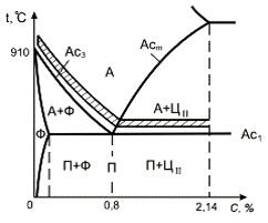 16. Объясните, можно ли упрочнить свинец, если его подвергнуть деформации при комнатной температуре. TплPb=327ºC. 17. Закалка и отпуск конструкционных сталей. Назначение, получаемые структуры и свойства. ОТВЕТ.. Закалка – нагрев доэвтектоидной стали на 30..50°С выше АС3, заэвтектоидной - на 30..50°С выше АС1, выдержка и последующее охлаждение со скоростью выше критической (Рис. 38, 42). Цель закалки – получение структуры мартенсита. Структуры сталей после закалки: доэвтектоидных - М+Аост, эвтектоидной - М+Аост, заэвтектоидных – М+Аост+ЦII.