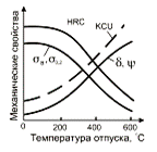 Рис. 43. Влияние температуры отпуска на механические свойства закаленной стали