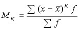 Моментом распределения называется средняя арифметическая тех или иных степеней отклонений индивидуальных значений признака от определенной исходной величины. В общем виде момент можно записать следующим образом: