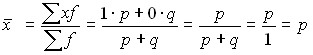 Единицы изучаемых явлений могут характеризоваться такими признаками, которыми одни единицы совокупности обладают, а другие – нет. Такой признак называется альтернативным. Наличие признака обозначается единицей, а его отсутствие – нулем. Доля единиц, обладающих этим признаком, обозначается p, а доля, им не обладающая – q. Следовательно, p + q = 1, q = 1 – p. Среднее значение альтернативного признака равно: