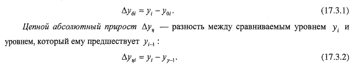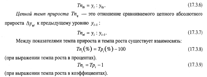 Из преобразований в формуле (17.3.10) следует, что темпы наращивания можно непосредственно определять по базисным темпам роста: