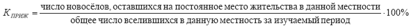 Данный коэффициент показывает число прибывших в i-ую группу населения в среднем на 1000 человек населения этой группы. Коэффициент приживаемости определяется по формуле: