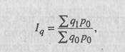 Такой индекс показывает, во сколько раз возросла (уменьшилась) стоимость продукции (товарооборота) отчетного периода по сравнению с базисным, или сколько процентов составляет рост (снижение) стоимости продукции. Индекс физического объема продукции – это индекс количественного показателя. В этом индексе индексируемой величиной будет количество продукции в натуральном выражении, а весом – цена. Только умножив несоизмеримые между собой количества разнородной продукции на их цены, можно перейти к стоимостям продукции, которые будут уже величинами соизмеримыми. Так как индекс физического объема – индекс количественного показателя, то ве6сами будут цены базисного периода.