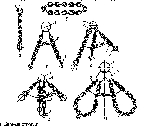 Чотирьохвітковий строп типу СК другого виконання: 1 – вітка стропа (ВК); 2 – кінцева ланка; 3 – ланка вирівнювальна; 4 – захватна ланка; 5 – вирівнювальна вітка; L ─ довжина стропа. Двохвітковий строп типу СК 1 – вітка стропа (ВК); 2 – кінцева ланка; 3 – захватна ланка; L – довжина стропа. Кінцеві ланки: В якості кінцевих (з’єднувальних) елементів використовують овальні, овоїдні, трикутні ланки, вони бувають роз’ємні і нероз’ємні ланки.