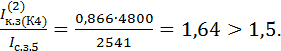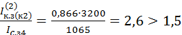 Рассчитать максимальные токовые направленныезащиты линий W3 и W4 (рис.1). Данные для расчета Номинальное напряжения линий Uном=Uнн=6,3кВ Максимальный ток нагрузки п/ст В Iнагр.Вmax=900 А Коэффициент самозапуска нагрузки п/ст В Ксзп=2,0 Токи КЗ от шин А в точках КЗ Iкз.А: К3 – 6,5кА, К4 = 4,8кА Токи КЗ от шин С в точках КЗ Iкз.С: К3 – 4,2кА, К2 = 3,2кА Максимальные выдержки времени защит, отходящих присоединений от шин: tc.з.maxA=1,5; tс.з.maxB=2,0; tc.зmaxC=1,0. Решение 1. Схема участка сети состоящей из двух ЛЭП с двухсторонним питанием приведена на рис.10. Защиты 3, 4, 5 и 6 установлены на каждой линии с двух сторон. Направленность защит показана стрелками. 2. Выбор тока срабатывания максимальных токовых направленных защит(МТНЗ). Ток срабатывания МТНЗ Iс.звыбирается по условию отстройки от максимального тока нагрузки с учетом перегрузки и самозапуска. Максимальный ток нагрузки на линии будет в режиме, когда вторая линия отключена и будет равен Iнагр.Вmax=900A. Ток срабатывания защит желательно выбрать независимо от направления мощности через защиты. Тогда токи срабатывания защит 4 и 5 необходимо отстроить от Iнагр.В.max: Iс.з.4=Iс.з.5= Ток срабатывания защит 3 и 6 выбираем по условию согласованию с предыдущей защитой по (2.2): Iс.з.3=Кc·Iс.з.5 =1,1·2541=2795А Iс.з.6=Кс·Iс.з.4=1,1·2541=2795А, где коэффициент согласования принят равным Кс=1,1 Проверяем чувствительность защит. Для защиты 3 чувствительность в конце зоны основного действия(ток КЗ, ток от шин А) Кч.3осн= В конце зоны резервирования(точка 4, ток от шин А) Кч.5осн= Для защиты 5 чувствительность в конце зоны основного действия(точка 4, ток от шин А) Кч.3рез= Чувствительность защит 3 и 5 обеспечивается. Для защиты 6 чувствительность в конце зоны основного действия (точка 3, ток от шин С) Кч.6осн= В конце зоны резервирования Кч.6рез= Защита 6 не проходит по чувствительности. Чтобы повысить чувствительность защиты можно применить более совершенные микропроцессорные защиты, у которых коэффициент отстройки можно взять равным 1,1, а коэффициент возврата 0,93-0,95. Тогда ток срабатывания защиты 6 будет равен Iс.з.6= Ток срабатывания защиты 4 выбираем без учета коэффициента самозапуска, что допустимо, т.к. при самозапуске защите не даст сработать реле направления мощности: Ic.з.4= При этом Iс.з.4 и условие согласования защит обеспечивается. Чувствительность защиты 6 как основной Кч.босн= и как резервной Кч.6отс= Чувствительность защиты 6 обеспечивается. Чувствительность защиты 4 как основной определяется при КЗ в точке К2, ток от шин С Кч.4осн= 3. Выбор выдержек времени защит. Выбор выдержек времени для направленных защит выполняется по встречно-ступенчатому принципу, при этом согласуются по времени отдельно защиты одного направления. Время срабатывания защиты 5 tс.з5=tс.з.Сmax+Δt=0,1+0,5=1,5c. где ступень селективности Δt принято равной 0,5с Время действия защиты 3 выбирается по двум условиям tс.з.3≥ Принимаем tс.з3=2,5с. Для четных защит tс.з4=tс.зАmax+Δt=2,0+0,5=2,5c. tс.з6≥ Принимаем tс.з6=2,5с. Характеристики выдержек времени для токовых защит линии с двухсторонним питанием W3 и W4 построены на рис. 4. Схема защиты приведена на рис.11.