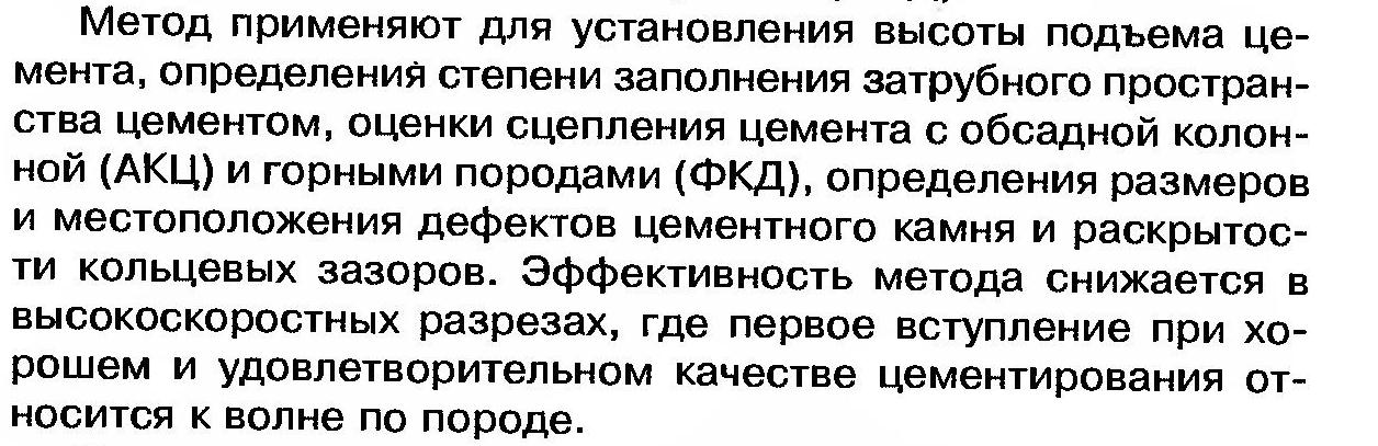 Акустическая цементометрия основана на измерении характеристик волнового поля, созданного источником упругих колебаний с частотой излучения 10-30 Гц.