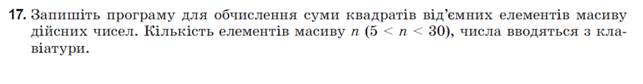sum:=0; for i:=1 to n do if a[i]<0 then sum:=sum+sqr(a[i]); writeln('Сума квадратів відємних елементів',sum:4:2); end else writeln('Невірне число') end.