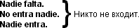 3. No falta nadie. - Никто не отсутствует. Порядок слов при отрицании nо и отрицательном местоимении nadie - никто может быть только такой. При отсутствии отрицания nо: Сравнить: 4. ...el profesor explica la nueva lecci Сравнить: Un nuevo traje - новый, то есть другой костюм. 5. ... a su izquierda - налево от него. Сравнить: 6. ...hablan espa 7. La capital de Cuba es la ciudad de La Habana. После слова ciudad перед названием города всегда ставится предлог de. Сравнить: 8. Глагольное управление. Juan falta a clase. - Хуан отсутствует на занятии.