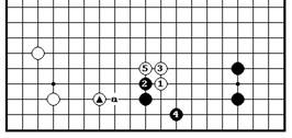 С точки зрения формы б.«а» становиться главной точкой для уменьшения, когда белые имеют отмеченный камень @ рядом с черным камнем @. Даже без белого @ пункт