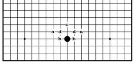 Против диагонального хода белые играют «а», «b» и т.д.; против черного моё слева белые ходят в «c» или «d».