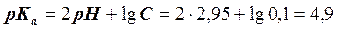 та знаходимо значення константи кислотності: Ка = 10-4,9 = 1,3∙10-5.