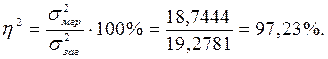 Відношення дисперсії факторної до загальної називається коефіцієнтом детермінації.