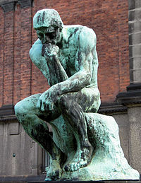 «Мислитель», Огюст Роден, 1888 рік Філософське мислення характеризується такими ознаками: · гранично широкий рівень узагальнення, що виходять на межу буття і небуття; · постає формою людського самоусвідомлення, мисленням під кутом зору людини, її життєвого вибору; · окреслює дійсність не лише такою, якою вона є, але й такою, якою має бути; · є більшою мірою мисленням про мислення, ніж мисленням і думкою про якусь реальність; · філософське мислення постає внутрішньопов'язаним, логічно послідовним, аргументованим та обґрунтованим; · прагне поставити і розв'язати граничні, абсолютні проблеми людського буття. Зазначені риси філософського мислення обумовлені тим, що саме у філософії та за допомогою філософії людина заявляє про своє бажання взяти на себевідповідальність за свідоме вирішення своєї життєвої долі. Тобто тією мірою, якою людина здатна на сьогодні осмислити та зрозуміти себе і своє становище у світі, тією мірою, якою вона просякнута рішучістю пройти усю можливу дистанцію розумового прояснення своєї життєвої ситуації, — саме тією мірою вона філософствує або постаєфілософом. Філософія в культурі[ред. • ред. код] Філософія займала і займає важливе місце в культурі людства — всіх матеріальних та духових продуктів і цінностей, створених людьми, на відміну від природи, що виникає й існує без стороннього втручання. Стародавні греки виділяли три розділи культури: · пов'язаний з істиною — предмет науки; · пов'язаний з красою — предмет мистецтва; · пов'язаний з визначенням добра і зла — предмет філософії. Філософію Арістотель ділить на три галузі: 1. Теоретичну — про буття, називаючи її «першою філософією», наукою про перші причини та начала. Метою її є знання заради знання. 2. Практичну — про діяльність людини. Метою практичної філософії є знання заради діяльності. 3. Поетичну, або творчу, метою якої є знання заради творчості. Важливо відзначити й те, що філософія і мистецтво приділяють суттєву вагу людському самовідчуттю та інтуїції, проте розходяться вони у тому, що філософія постає розумовим осягненням світу, а мистецтво подає його через почуття та переживання. Вихідною формою думки для філософії є поняття, а вихідною формою художньої творчості постає художній образ. Мистецтво до того ж надає вирішального значення уяві як творця, так і тої людини, яка сприймає його твори, тому воно зображує дійсність із значною долею умовності, хоча ця умовність постає своєрідним способом проникнення у глибини процесів дійсності.