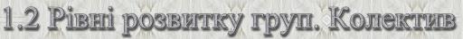Групи поділяються залежно від рівня розвитку. · Дифузні – неорганізовані або випадково організовані групи (глядачі, екскурсія, натовп тощо). · Асоціація – група, в якій відсутня об’єднуюча їх спільна діяльність, організація та управління і в якій взаємовідносини опосередковуються особисто значимими цілями спілкування (асоціація колекціонерів марок, приятелі тощо). · Кооперація – група з реально діючою організаційною структурою, міжособистісні стосунки в якій носять діловий, формальний характер, підпорядкований досягненню необхідних результатів у певному виді діяльності. · Колектив – соціальна група вищого рівня розвитку, з певною організаційною структурою, що поєднана цілями спільної суспільно-корисної діяльності і має складну динаміку формальних та неформальних стосунків. Діяльність членів колективу визначається особистісно значимими і соціально визнаними цінностями. · Корпорація – група, об’єднана на основі внутрішніх, корпоративних, егоїстичних інтересів і намагається їх реалізувати “за будь-яку ціну”, в тому числі і за рахунок інших груп. Діяльність корпорації може носити асоціальний, а інколи антисоціальний зміст (група бізнесменів, банкірів, мафія). Основні поняття і ключові слова: соціальна психологія, соціальна група, соціальна спільність, види груп, рівні розвитку груп, колектив.