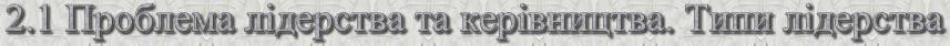 Проблема лідерства і керівництва – одна з кардинальних проблем соціальної психології. Лідер (від англ. leader – провідний, керівник) – особистість, що користується визнанням та авторитетом групи і за якою група визнає право приймати рішення про дії у важливих ситуаціях, бути організатором діяльності групи і регулювати відносини у групі. Поняття “лідер” пов`язано з поняттями “управління” і “керівник”. На відміну від лідера, який переважно здійснює регуляцію міжособистісних стосунків у групі, керівник здійснює регуляцію офіційних стосунків. Лідер – це член групи, який добровільно взяв на себе значну міру відповідальності у досягненні групових цілей. Формальний лідер призначається або вибирається, набуваючи таким чином офіційного статусу керівника. Неформальний лідер, це член групи, який найбільш повно у своїй поведінці відповідає груповим цінностям і нормам. Він веде групу, стимулюючи досягнення групових цілей і виявляючи при цьому більш високий рівень активності порівняно з іншими членами групи. Лідер і керівник мають справу з однопорядковим типом проблем, а саме – вони повинні стимулювати групу, націлювати її на вирішення певних задач. В психологічних характеристиках їх діяльності є багато спільних рис. Однак лідерство – це чисто психологічна характеристика поведінки окремих членів групи. Керівництво у більшості є соціальною характеристикою відносин у групі, перш за все з точки зору розподілу ролей управління і підпорядкування. Типи лідерства Лідери розрізняються: · За способом організації змісту діяльності колективу а) лідер-програміст – спроможний створити способи колективної діяльності і надихає колектив на її виконання; б) лідер-виконавець – організовує виконання вже створеної (опрацьованої) програми; в) універсальний лідер – уособлює в собі програміста і виконавця. · За характером діяльності а) лідер діяльний – який постійно демонструє свої здібності; б) лідер ситуативний – який виявляє себе лише в певних ситуаціях. · За стилем керівництва а) Авторитарний (синонім директивний, вольовий) – стиль базується на жорсткому способі управління, недопущенні ініціативи. При автократичному стилі відбувається виразний поділ на керівника й підлеглих, тих, які командують, і тих, що зобов’язані виконувати накази, розпорядження. Керівник-автократ сам визначає мету діяльності групи та спосіб її досягнення і лише в незначній мірі дозволяє членам групи прилучатися до прийняття рішень. Він монополізує більшість одержуваної інформації та право на ініціативу, сприймається оточуючими як диктатор чи деспот, не виявляє гнучкості в ставленні до подій у групі, а його сприйняття світу в даному випадку явно негативне. Наслідком такого стилю управління стає зменшення числа ініціатив і послаблення міжособових контактів. У групі назрівають тенденції до бунту, а деколи й реальна агресія, хоча група як цілісність має загалом непогані результати. Позитивні аспекти стилю – дисципліна, швидке реагування в екстремальних ситуаціях, негативні – низька ініціатива, можливе погіршення психологічного клімату в колективі. Авторитарний стиль лідерства доцільно використовувати в ситуаціях, де потрібне жорстке підкорення певним вимогам (військова служба), у випадку, коли виникає потреба швидко і одноосібно вирішити кризову, конфлік