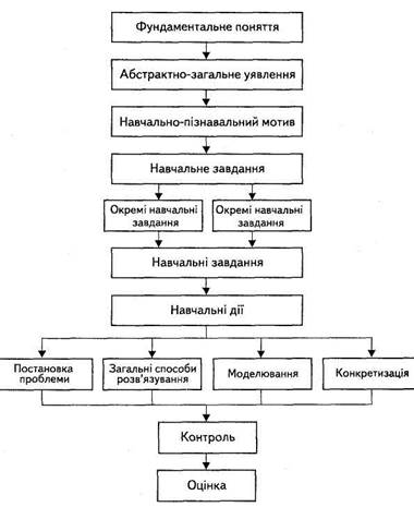 Відомий психолог Д. Б. Ельконін — автор популярної періодизації онтогенезу людської особистості — в кінці 50-х років XX ст. висунув гіпотезу про те, що провідною діяльністю для молодшого учня є навчальна діяльність. При цьому він вкладав у це поняття специфічний психологічний зміст, відмінний від загальноприйнятого в педагогічній практиці, де на той час навчальною вважалась будь-яка діяльність учня в ході навчального процесу. Учіння — це особлива діяльність учня, яка свідомо спрямована на здійснення цілей навчання й виховання, які учень приймає як власні, особистісні цілі. Мотивом такої діяльності може бути лише пізнавальний мотив, пов'язаний з опануванням узагальненими способами дій з науковими поняттями, передбаченими загальноосвітнім курсом сучасної школи. Оскільки саме із засвоюванням основ наук, у яких у найбільш систематизованій формі представлено основні здобутки людської цивілізації, пов'язані найвагоміші результати шкільної соціалізації — формування теоретичного мислення як вершини розвитку людського розуму й духовних потреб. Щоб відрізняти таку діяльність від тривіального розуміння учіння, вчений називає її цілеспрямованою навчальною діяльністю. 2. Психологічні теорії уміння Його учень та послідовник В. В. Давидов задався метою експериментально довести гіпотезу вчителя, і для цього започаткував експериментальне розвивальне навчання, метою якого було формування такої діяльності й вивчення впливу засвоєння її учнем на його особистісний розвиток у цілому. У ході роботи над проблемою експериментально було встановлено такі особливості цілеспрямованої навчальної діяльності: • діяльність орієнтована не на одержання матеріальних або соціальних переваг, а безпосередньо на зміну учнів, на їхній саморозвиток, і це найкраще відображається у формуванні їхніх пізнавальних інтересів; • основним змістом, що підлягає засвоєнню в межах цілеспрямованої навчальної діяльності, є загальні способи дій по розв'язанню завдань; • одним із найважливіших показників сформованості цілеспрямованої навчальної діяльності є здатність учня розрізняти конкретний результат і загальний спосіб, яким цього результату було досягнуто; • з метою актуалізації й розвитку навчально-пізнавального інтересу, вивчання будь-якої теми за умов розвиваль-ного навчання починається з мотиваційного вступу, в якому викладається інформація про те, чому, для чого і навіщо потрібно вивчати поточну тему; • найважливіша особливість цілеспрямованої навчальної діяльності — її науково-теоретичний характер (тобто, це така діяльність, яка передбачає формування й актуалізацію наукового устрою мислення, а це можливе лише за умов, коли зміст навчання становлять не емпіричні, а наукові поняття, подані як система). Відомо, що наукові поняття існують у формі наукових систем, елементи яких логічно взаємопов'язані. В основі системи лежить поняття, яке є найбільше за обсягом і най-абстрактніше за змістом. Усі похідні поняття містять цей зміст як загальне або родове й на додаток до нього ще дещо, що визначає їхню видову специфіку чи то конкретну визначеність. Враховуючи цей факт, було запропоновано при формуванні цілеспрямованої навчальної діяльності застосовувати принцип змістового узагальнювання. Суть його полягає в такому принципі формування навчаль