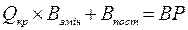 Рисунок 4.2 – Динаміка витрат і виручки від реалізації продукції залежно від обсягу виробництва: Q – обсяг виробництва; Qкр – критичний обсяг випуску певної продукції; В – витрати на випуск продукції; Впост – постійні витрати; Взмін – змінні витрати; – сумарні витрати на випуск продукції; ВР – виручка від реалізації продукції.