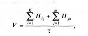 де К— кількість «операторів»; НІа — ентропія і-го «оператора»; Н.л — ентропія -го логічної умови; т — кількість логічний умов; т — час виконання алгоритму, Ентропії II, '\ ІІч визначаються за формулами, наведеними у спеціальній літературі [57]. Напруженість (інтенсивність) виконаний алгоритму визначаємо ш формулою;