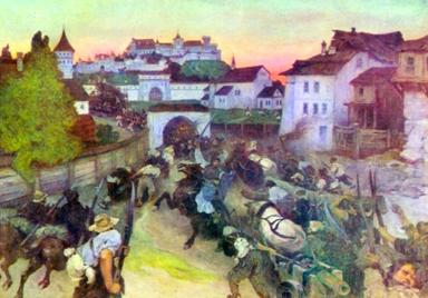 І.С.Їжакевич. Повстання під проводом Мухи. 3. Міста та їхні жителі. Маґдебурзьке право. У ХІV—ХV ст. став помітним процес урбанізації — зростання кількості й населення міст та посилення їхньої ролі в економічному та культурному житті суспільства. Поступово, але повільно відроджувалися міста, спустошені під час монголо-татарської навали, з’являлися нові. У цей період українські міста зберігали феодально-аграрний характер. Міщани займалися землеробством, скотарством, промислами й частково ремеслом і торгівлею. При цьому вони перебували в залежності від магнатів і, подібно до селян, відбували повинності, сплачували їм оброк натурою, інколи грошима. Населення багатьох міст у Подніпров’ї відбувало виключно військову повинність, що було пов’язано з нападами татар.