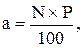 де а – частка базисного (начального) числа; N – базисне (начальне) число (загальний обсяг явища); P – відсоток, який відповідає частці начального числа. Нагадаємо, що базисне (начальне) число приймається за 100%.