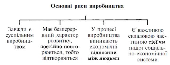 Рисунок 1.4. Основні риси виробництва Розглянемо процес виробництва з боку елементів, що визначають його технологічний бік. Скористаємося рисунком 1.5.