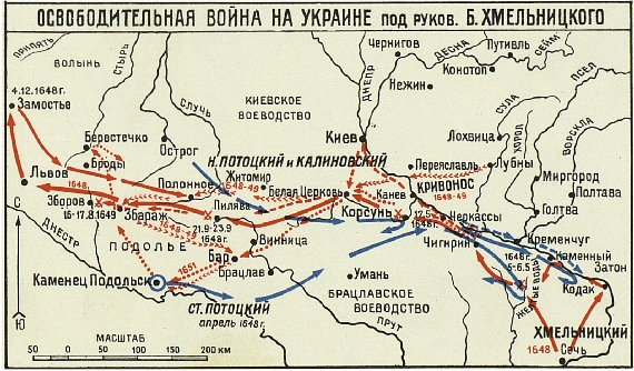 Вересень – грудень – оточення польської армії (50 000) під Жванцем (на Поділлі) силами Хмельницького (30 – 40 000 воїнів) і кримського хана. 18 – 20 листопада: героїчна оборона козаками замка в Буші на Поділлі. 27 серпня – Турецько-татарсько-українська армія на чолі з султаном Мехмедом IV (100 000 воїнів), кримським ханом Селім Гераєм, та гетьманом П.Дорошенком (12 000 воїнів) здобули польську фортецю Кам’янець на Поділлі. 3 (13) січня - Бахчисарайський мир: Османська імперія визнавала владу московського царя на Лівобережжі, Києві і окрузі і на Запоріжжі, султана було визнано володарем Поділля і південної Київщини, але спустошені землі між Південним Бугом і Дніпром мали залишатися незаселеними. Турки позбавляють влади Ю.Хмельницького, а його землі на Поділлі передають під управління молдовського господаря Георгія Дуки (1681 – 1683), який прагнув відродити спустошені війною українські землі. Реальне керівництво на Поділлі здійснював наказний гетьман Іван Драгинич. 1648, 11-13 вересня - битва під Пилявцями; польський сейм оголосив мобілізацію і скликання шляхетського ополчення, це військо було направлено на придушення козацького виступу; обидві армії зустрілися поблизу містечка Пилявці на Поділлі; 13 вересня відбулася вирішальна битва, яка завершилася нищівним розгромом польського війська і панічною втечею.. 1652, 22-23 травня - розгром польського війська М. Калиновського козацько-татарським військом на чолі з Б. Хмельницьким під Батогом на Поділлі; козацько-татарські війська оточили польський табір і розгромили його; у результаті цієї перемоги українські війська зайняли територію України до р. Случ