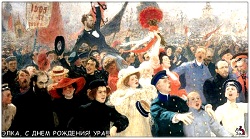 17 жовтня (з картини І. Рєпіна) Фіналом 1905 р. були грудневі зіткнення робітників із владою в Москві, що переросли в барикадні бої. Грудневе збройне повстання було придушене царським режимом, і революційна хвиля пішла на спад. Ще до грудневих подій, під тиском розмаху революції, самодержавство змушене було піти на поступки, 17 жовтня 1905 р. цар підписав Маніфест, у якому обіцяв скликати Державну Думу, провести низку реформ у країні. Значна частина російського суспільства не хотіла подальшого розхитування держави, вважаючи достатніми здобуті поступки з боку самодержавства. У країні утворювались нові політичні партії та організації. Восени 1905 р. сформувалась партія октябристів («Союз 17 жовтня», російською — «Союз 17 октября»). Назва партії відображала її задоволеність поступками царського уряду, зафіксованими в Маніфесті від 17 жовтня 1905 р. Ліберальна програма октябристів була спрямована на встановлення конституційної монархії, проведення законодавчих реформ, відкидала революційне насильство.