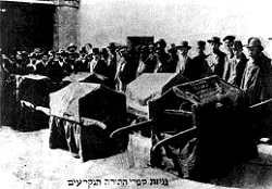 Похорони сувоїв Тори, спаплюжених під час кишинівського погрому. Кривавий єврейський погром відбувся в квітні 1903 р. у Кишиневі. Десятки людей були вбиті, сотні — поранені та скалічені. Кишинівські євреї спробували організувати самооборону, але бійці їхніх загонів були оточені поліцією та військами, роззброєні та заарештовані. Під час єврейських погромів у 1905-1907 рр. влада, як і раніше, або напряму підтримувала погромників, або потурала бандитам своєю повною бездіяльністю. Царизм та реакційні суспільні сили намагалися спрямувати соціальну активність населення, яке протестувало проти соціально-економічного та національного тиску, в бік насильства проти євреїв. Кращі представники християнської і нтелігенції виступали проти антиєврейських акцій. Одеський архієпископ Дмитрій з церковної кафедри засуджував погроми. Єпископ чигиринський Платон ходив вулицями київського Подолу і умовляв натовп заспокоїтись та не чіпати євреїв. Проти антисемітизму виступали відомі політики та діячі культури. Український та російський письменник, громадський діяч Володимир Короленко у своїх статтях викривав брехню та злочини чорносотенців. За ініціативи російського письменника Максима Горького була надрукована літературна збірка «Погром», у якій взяли участь письменники М. Гарін-Михайловський і В. Вересаєв, видатні вчені К. Тімірязєв і І. Сєченов. У збірці різко засуджувався антисемітизм і злочини погромників. Деякі партії, профспілки та інші організації ухвалювали антипогромні резолюції та звернення. Громадські діячі збирали гроші для допомоги жертвам погромів. Під час антисемітської «справи Бейліса» у 1913 р. українці та росіяни, селяни та міщани, що були присяжними засідателями, виправдали М. Бейліса і, таким чином, відкинули несправедливі звинувачення. 6. СОЦІАЛЬНО-ЕКОНОМІЧНИЙ РОЗВИТОК РОСІЇ НА ПОЧАТКУ XX ст. Особливості економічного розвитку Росії на початку XX ст. У 1890-ті рр.< Росія за темпами економічного розвитку займала одне з перших місць у світі. Проте на початку XX ст. на розвиток господарства вплинули війна з Японією та піднесення революційного руху, внаслідок чого темпи промислового розвитку знизились. У 1900-1903 рр. в Росі розпочалась економічна криза. Почавшись у легкій промисловості, з найбільшою силою вона вразила важку промисловість. Криза значно посилила процес монополізації російської промисловості, а також прискорила процес концентрації виробництва, сприяла переростанню монополістичного капіталу у державно-монополістичний. Економічний розвиток Росії мав такі особливості: