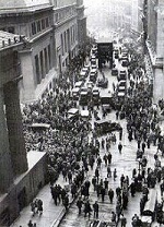 Крах на Нью-Йоркській біржі 24 жовтня 1929 р. Курс цінних паперів став стрімко падати, і через п’ять днів було встановлено новий рекорд продажу акцій — 16,4 млн. При цьому падіння курсу акцій майже не припинялося понад три роки, і на березень 1933 р. їхня загальна вартість зменшилася у 4,5 раза.
