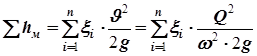 · В нашей задаче местные потери напора равны: å hм = hвн.суж . + hв + 2 hпов . + hвых = (xвн.суж . + xв + 2 xпов . + xвых)× Q2/(w2× 2 g); å hм = å x× Q2/(w2× 2 g); где å x =xвн.суж . + xв + 2 xпов . + xвых · В нашей задаче суммарные потери напора равны: h1-2 = (l×l/d+åx) × Q2/(w2× 2 g. · При развитом турбулентном движении в местном сопротивлении (Re > 104) имеет место турбулентная автомодельность - потери напора пропорциональны скорости во второй степени, и коэффициент сопротивления не зависит от числа Re ( квадратичная зона для местных сопротивлений). При этом xкв=const и определяется по справочным данным (Приложение 6). · В большинстве практических задач имеет место турбулентная автомодельность и коэффициент местного сопротивления - постоянная величина. · При ламинарном режиме x = xкв×j, где j -функция числа Re (Прил. 7). · При внезапном расширении трубопровода коэффициент внезапного расширения определяется так: x вн. расш = (1-w1 / w2)2 = (1-d12/d22)2 (40) · Когда w2 >> w1, что соответствует выходу жидкости из трубопровода в резервуар, . x вых. =1. · При внезапном сужении трубопровода коэффициент внезапного сужения x вн. суж. равен: