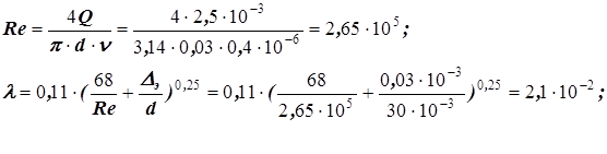 Так как число Рейнольдса Re >Reкр (2,65×105>2300), то коэффициент трения рассчитывался по формуле (38). По условию кинематический коэффициент вязкости задан в сантистоксах (сСт). 1сСт = 10-6м2/с. · Коэффициент Кориолиса a1 в сечении 1-1