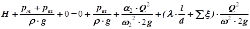 · Местные потери напора равны å hм = å x× J2/( 2 g) = å x× Q2/(w2× 2 g); где å x задано по условию · Суммарные потери напора равны h1-2 = (l×l/d+åx) × Q2/(w2× 2 g); 3. Итак, подставляем определенные выше величины в уравнение Бернулли. В нашей задаче закон сохранения энергииимеет вид: