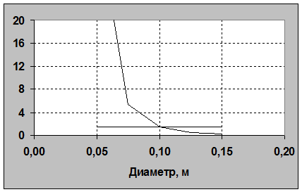 Графический способ решения Решить любое уравнение - это значит найти то значение неизвестной величины, при котором левая часть уравнения равна правой. Графический способ основан на построении графиков функций левой и правой частей уравнения (46) и нахождении точки их пересечения. При этом последовательно задаются рядом значений диаметра d, вычисляя при каждом значении d число Re, l, f(d), F(d). В данном случае F(d) обозначена левая часть уравнения (46). Последовательность вычисления коэффициента трения l накаждом шагеостается прежней, а именно: Последовательность вычисления l: