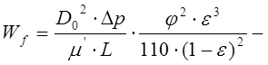 скорость фильтрации; внешний диаметр частиц слоя; потери напора через слой; коэффициент формы; динамическая вязкость жидкости; его толщина; пористость; полное поперечное его сечение, соответственно. Производительность фильтра определяется с учетом приведенных выше формул так: Зная удельное сопротивление фильтрующего слоя получаем: