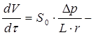 . В формуле для коэффициента проницаемости величины: В качестве определяющего размера в пористом слое обычно принимают внешний диаметр частицы. В других случаях это может быть средний размер пор и т.д. Таким образом в линейном законе сопротивления при фильтрации это сопротивление обратно пропорционально квадрату характерного размера пор. Для зернистого слоя роль определяющего размера играет диаметр зерна. Поэтому существует известное положение о том, что сопротивление фильтрующего слоя пропорционально вязкости жидкости и обратно пропорционально квадрату диаметра зерна. На этой основе получено основное кинетическое уравнение процесса фильтрации в виде: Здесь знаменатель правой части есть нечто иное как удельное гидравлическое сопротивление зернистого слоя, которое как это следует из уравнения Дарси определяется следующим образом.