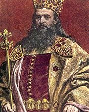 Роман Мстиславич — засновник Галицько-Волинського князівства. Об'єднання Галичини і Волині було здійснено волинським князем Романом Мстиславичем, сином Мстислава Ізяславича. Скориставшись безладдям уГаличі, він вперше зайняв його у 1188 році, але не зміг утримати його під натиском угорців, які також вторглися до галицької землі на заклик місцевих бояр. Вдруге Роман приєднав Галичину до Волині у 1199 році після смерті останнього галицького князя з роду Ростиславичів. Він жорстоко придушив місцеву боярську опозицію, що чинила опір його спробам централізувати управління, і заклав основи єдиного Галицько-Волинського князівства Водночас князь Роман втрутився у боротьбу за Київ: здобув у 1204 році, прийняв титул Великого князя Київського; у 1202, 1204 роках здійснив успішні походи на половців, чим завоював популярність серед простого населення. На початку XIII століття князь Роман перетворився на наймогутнішого правителя Східної Європи, якого літописці називали «великим князем», «самодержцем усієї Руси» та «царем в Руській землі».[10]Реалізувати до кінця своїх планів він не зміг через війну з Польським королівством, у якій загинув 1205 року.[11] Міжусобиці[ред. • ред. код] Через раптову смерть князя Романа у Галицько-Волинському князівстві утворився вакуум влади. Галичину і Волинь охопила низка безперервних міжусобиць, іноземних інтервенцій. Волинські дрібні князі унезалежнилися, галицькі бояри відмовилися визнавати владу малолітніх Романовичів —Данила, Василька. Під приводом захисту синів покійного князя Романа у справи князівства втрутилися сусіди — Польща й Угорщина. Першими розпочали боротьбу за владу у Галицькому князівстві Володимир, Святослав та Роман Ігоровичі, сини оспіваного у «Слові о полку Ігоревім»новгород-сіверського князя Ігоря Святославича[12] Вони утримувались в Галичині з 1206 по 1212 роки, через конфлікт з боярською верхівкою зазнали поразки. В результаті цього, у1213 році княжий престол у Галичі узурпував боярин Володислав Кормильчич, лідер про-угорського угрупування галицької знати. Після його вигнання у 1214 році монархи Угорщини таПольщі, користуючись слабкістю галицьких земель, вдерлися до них, розділили між собою. Незабаром угорці пересварилися з поляками, заволоділи усією Галичиною. Війну проти іноземних поневолювачів очолив Мстислав Удатний, виходець з дрібних київських князів (до того владарював у Новгороді). За допомоги половців розбив угорські війська у вирішальній битві під Галичем 1221 року, визволив Галицьке князівство, став панувати у ньому. Задля укріплення свого положення князь Мстислав уклав союз з молодими Романовичами, під впливом про-угорської партії галицьких боярів був змушений покинути князівство у 1228 року, яке заповідав угорському королеві Андрію ІІ.[13]