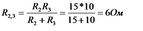 1. Определяем общее сопротивление разветвления R2, R3. Резисторы соединены параллельно, поэтому