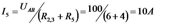 Поскольку напряжение UАВ остается равным 100 В, можно найти токи на резисторах R4 и R5: