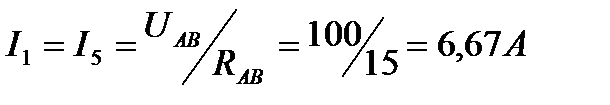 Поскольку напряжение UАВ остается неизменным, находим токи I1 и I5: