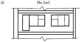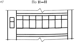Рисунок У.1 - План (а), разрез (б) по сечению I-I плана и фасад (в) по сечению II-II остекленного балкона многоэтажного жилого здания