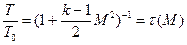 Далее, используя полученное число Маха, можно найти безразмерные отношения газодинамических параметров: