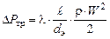 где l - коэффициент трения, зависящий от числа Рейнольдса и коэффициента шероховатости стенок канала k э (l для стальных труб 0,02);