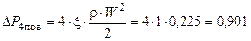 Потери давления при 4 резких поворотах на угол 90°(ξ=1[1,6]):